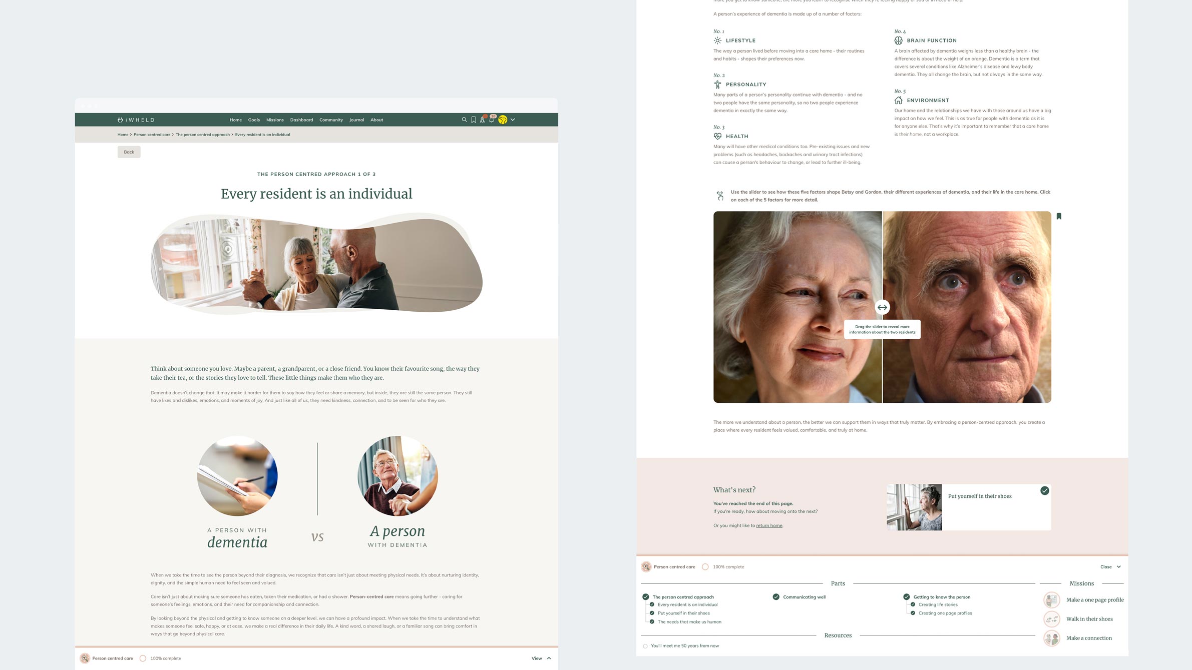 iWHELD have been creating a revolutionary programme for the care sector, based on 20+ years of valuable knowledge. Their ongoing mission being to empower and support people living with dementia in care homes. The challenge they were facing was making the programme look and feel as valuable as the content it contained, and making sure it felt accessible to an industry that is often overworked and understaffed.